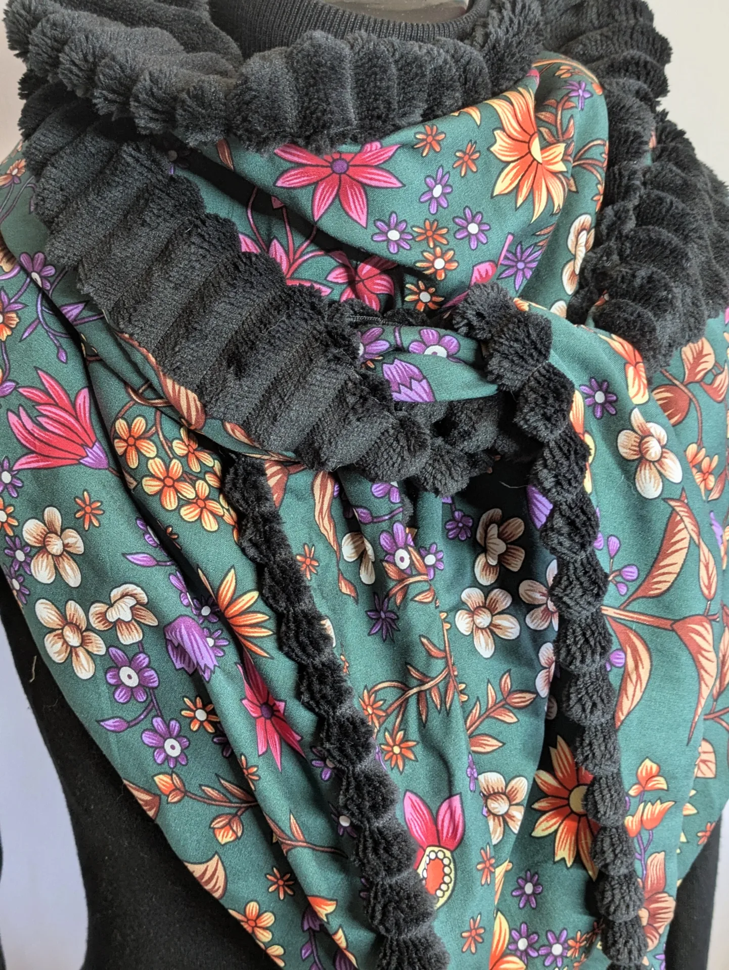 *Cette écharpe est confectionnée en viscose imprimé avec un minky côtelé très doux et bien chaud.