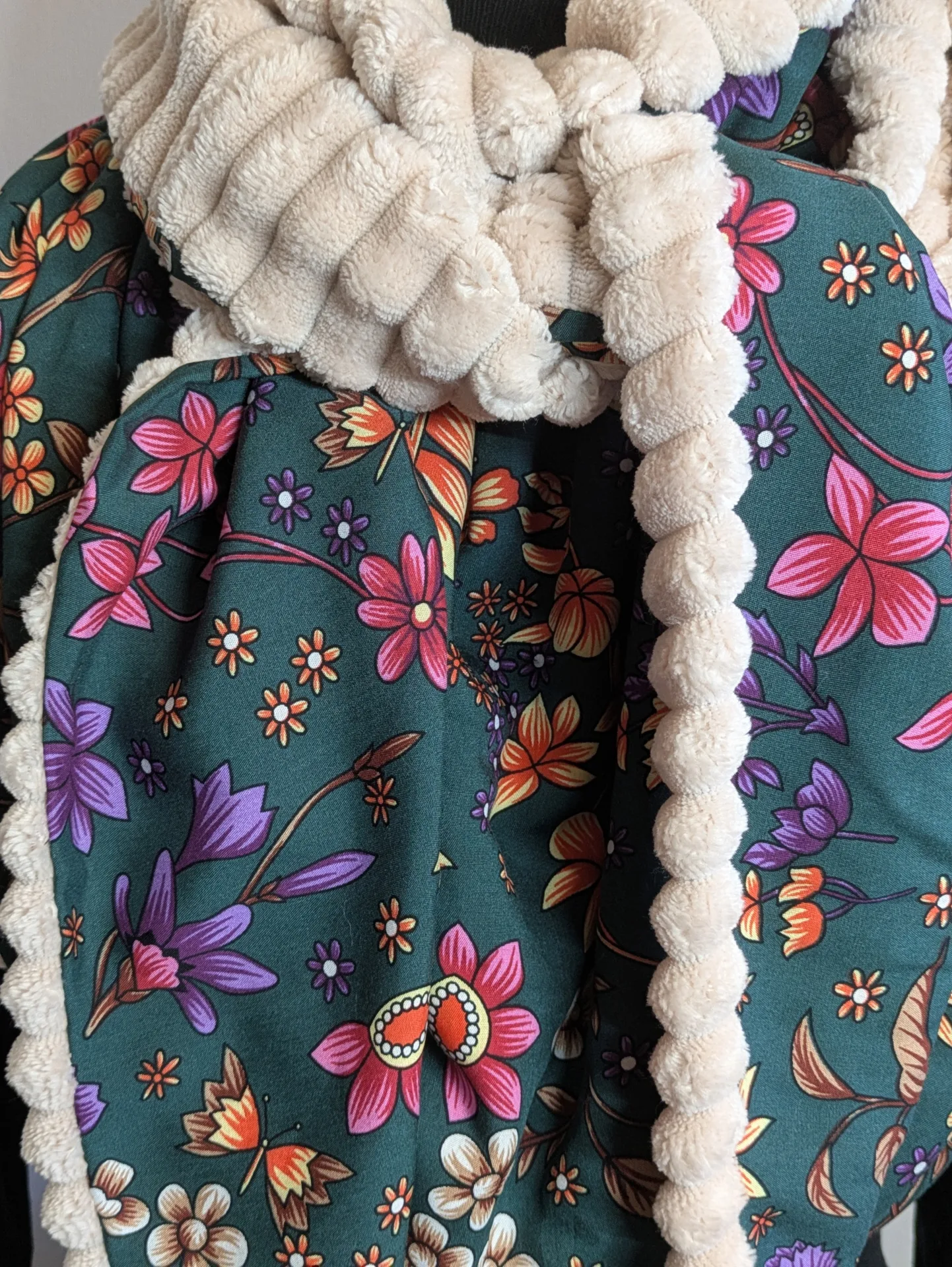 *Cette écharpe est confectionnée en viscose imprimé avec un minky côtelé très doux et bien chaud.