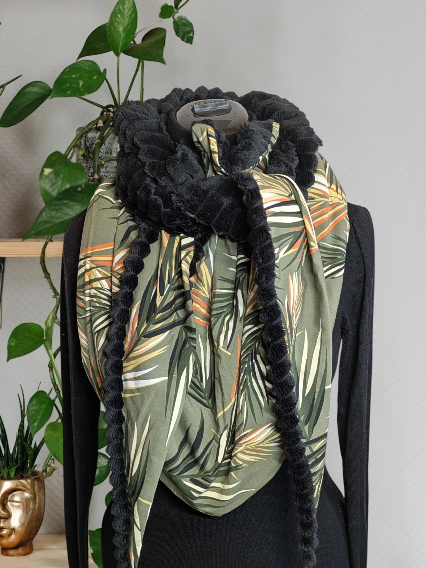 *Un foulard en forme de triangle à nouer autour du cou : Vous pouvez le décliner également en châle ou en étole.