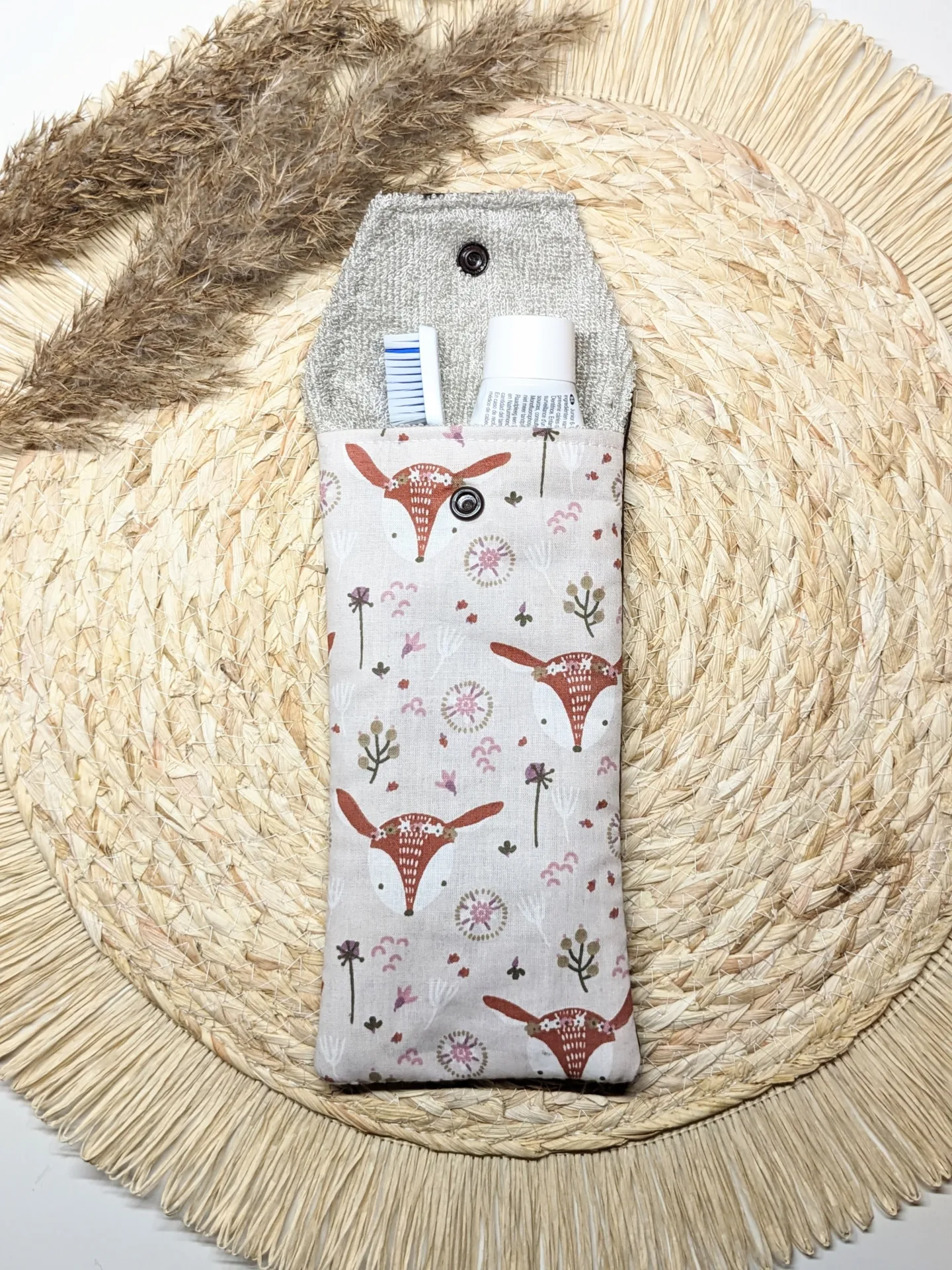 Elégant étui fait main, parfait pour protéger votre brosse à dents, pinceaux ou accessoires de maquillage.