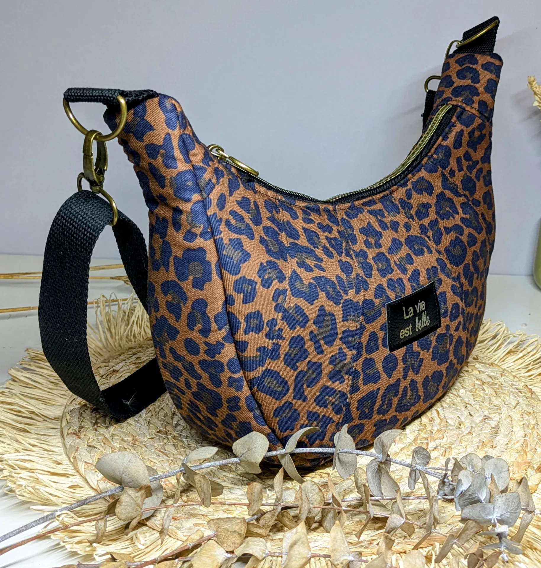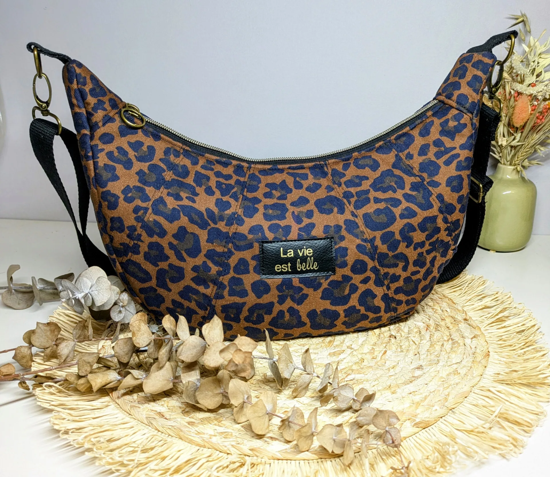 Ajoutez une touche de caractère à vos tenues avec ce sac à main demi-lune au motif léopard, entièrement fait main par mes soins. À la fois pratique et élégant, il est pensé pour vous accompagner au quotidien tout en affirmant votre style.