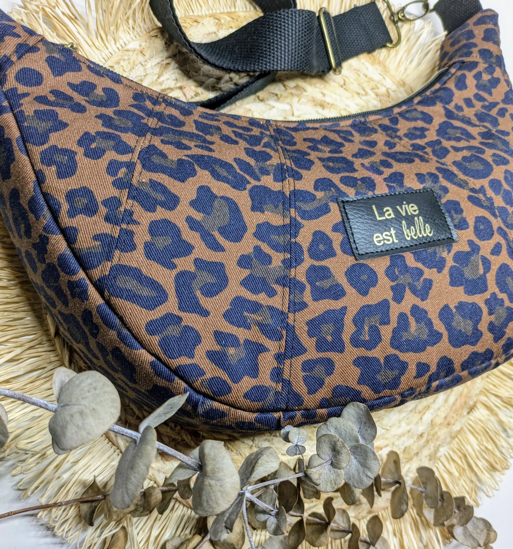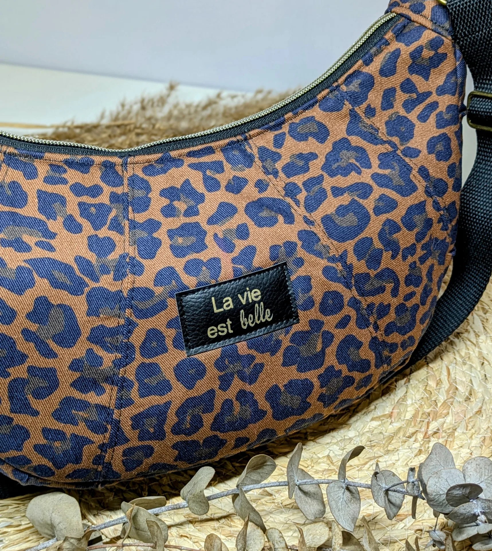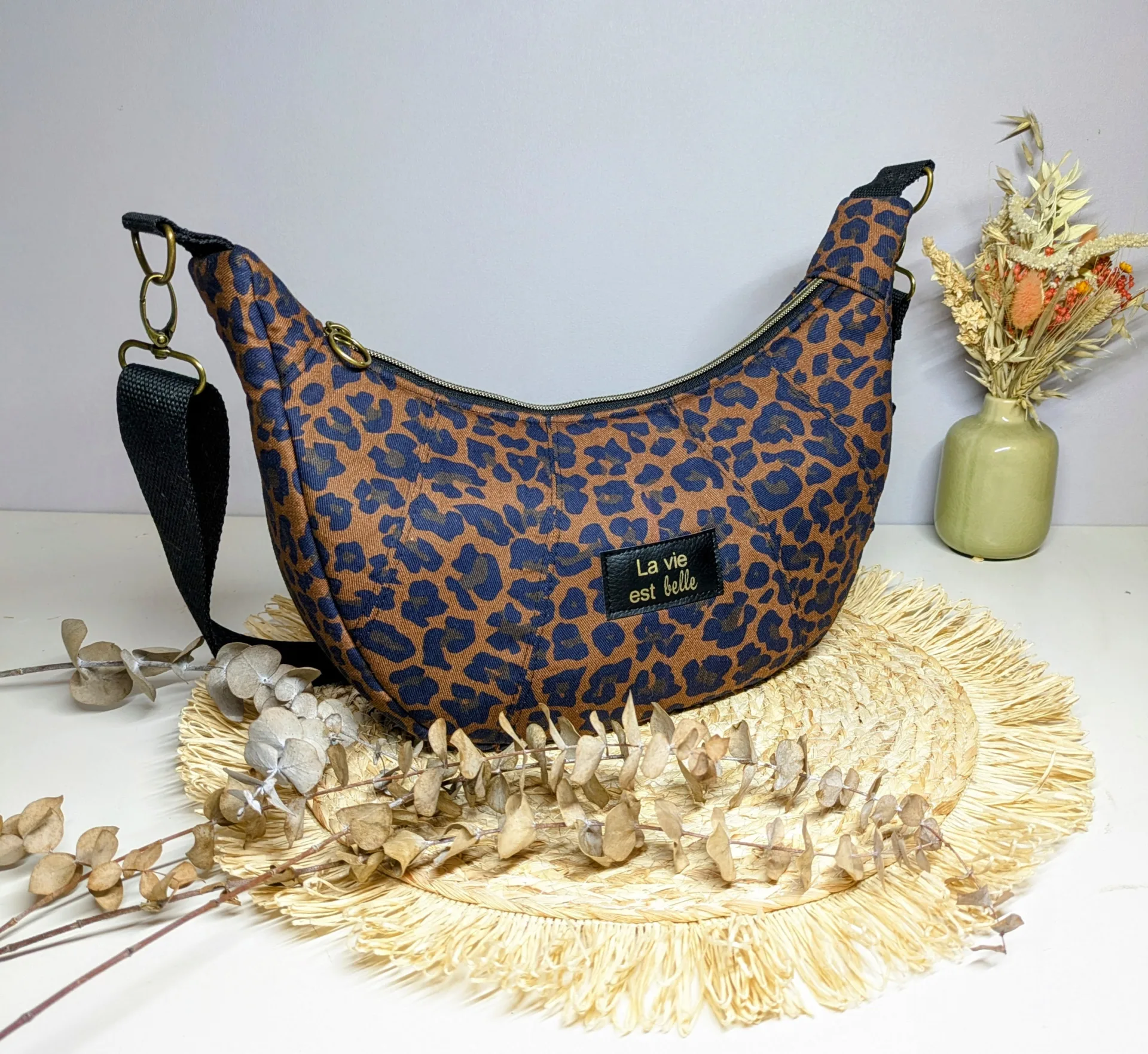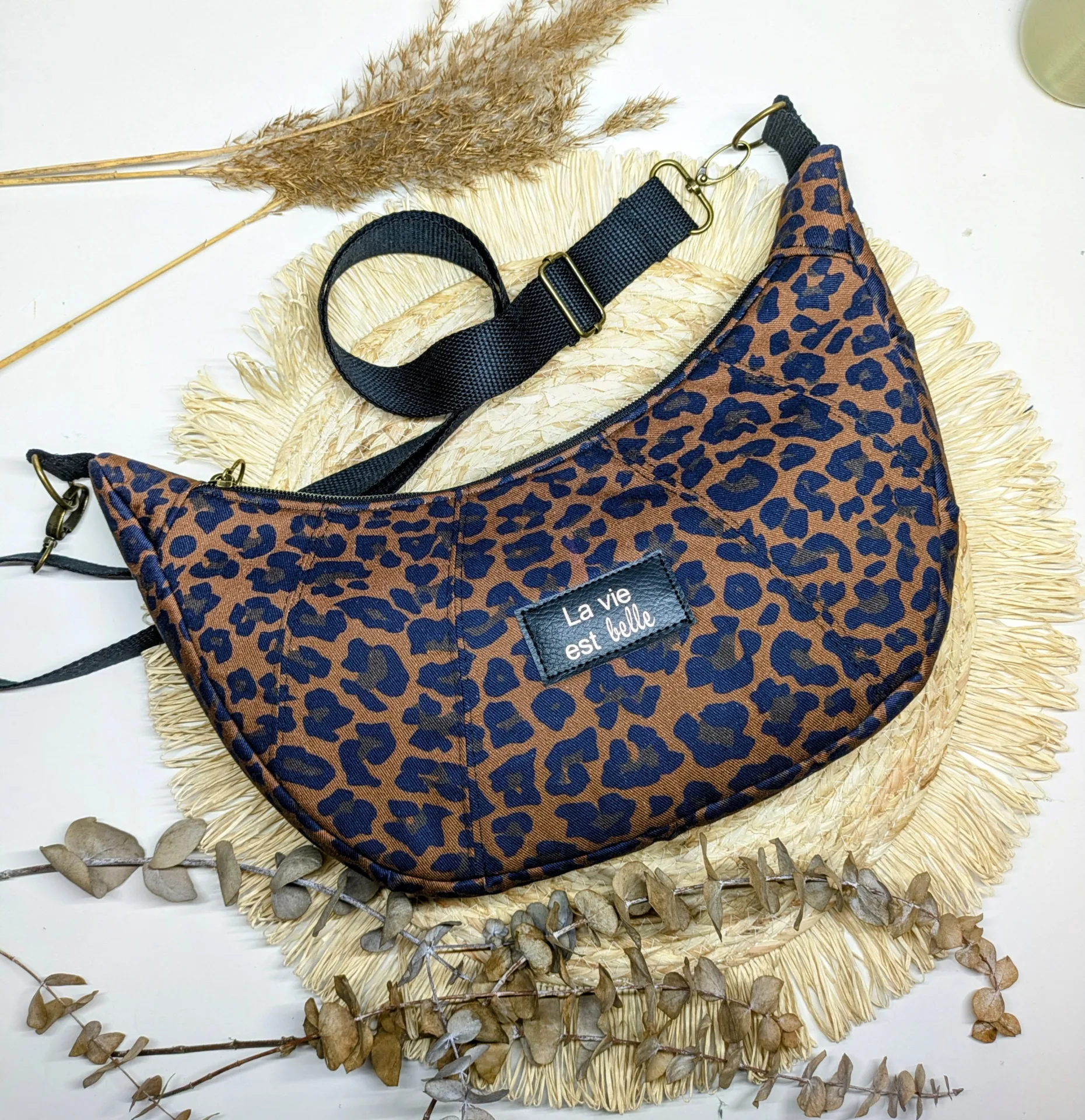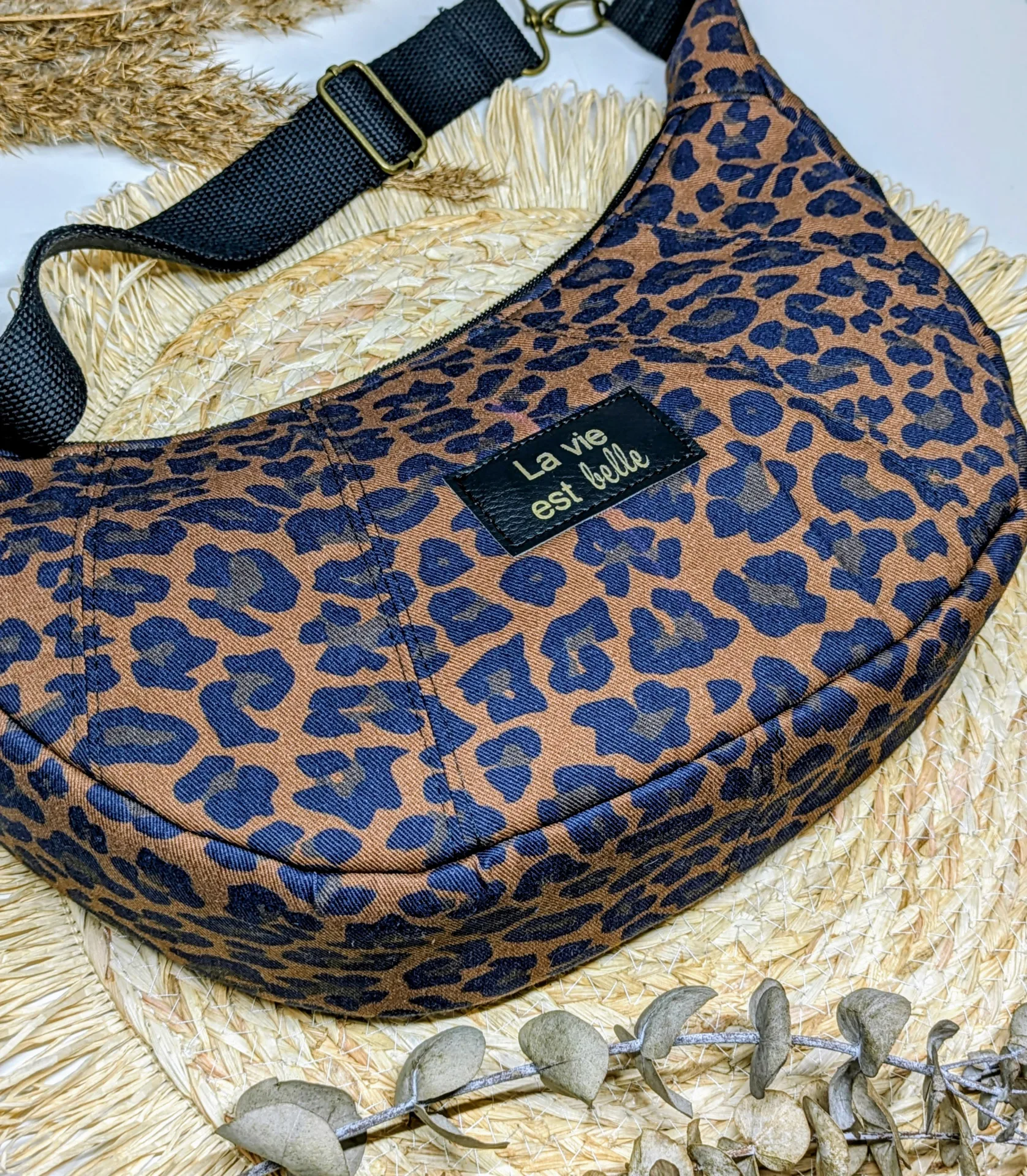 Confectionné dans un tissu résistant et de qualité, ce sac séduit par sa forme demi-lune tendance, son imprimé léopard intemporel et ses finitions soignées. Sa bandoulière réglable permet un porté épaule ou croisé, selon vos envies.