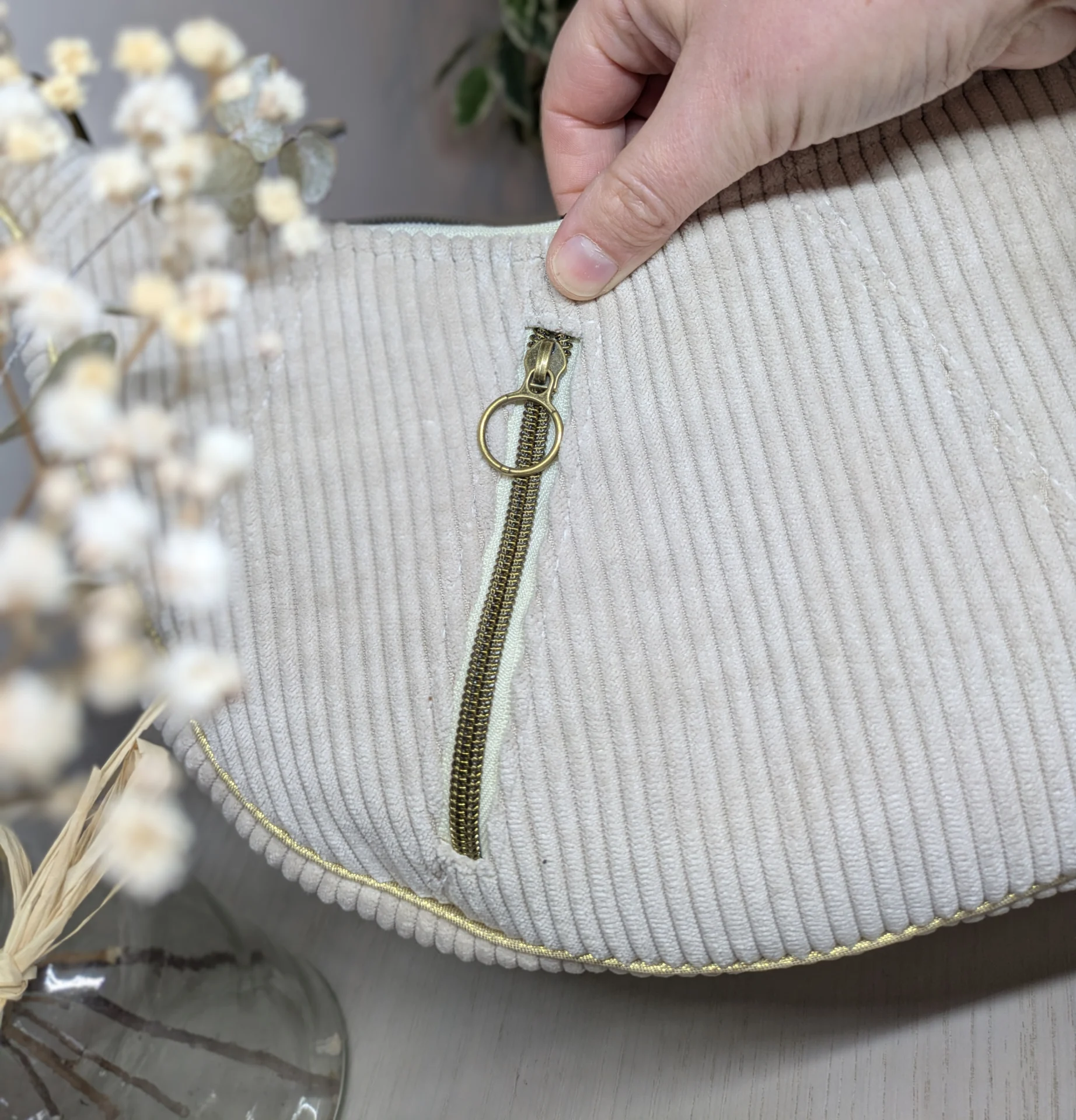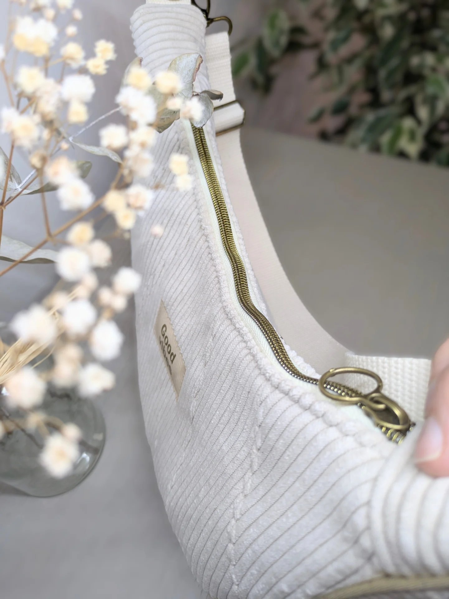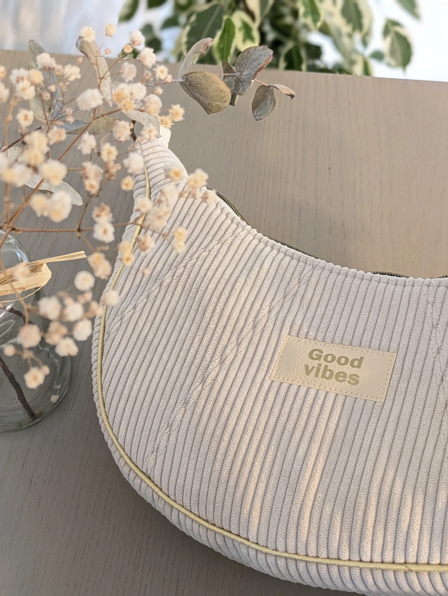 Ajoutez une touche de caractère à vos tenues avec ce sac à main demi-lune en velours côtelé, entièrement fait main par mes soins. À la fois pratique et élégant, il est pensé pour vous accompagner au quotidien tout en affirmant votre style.