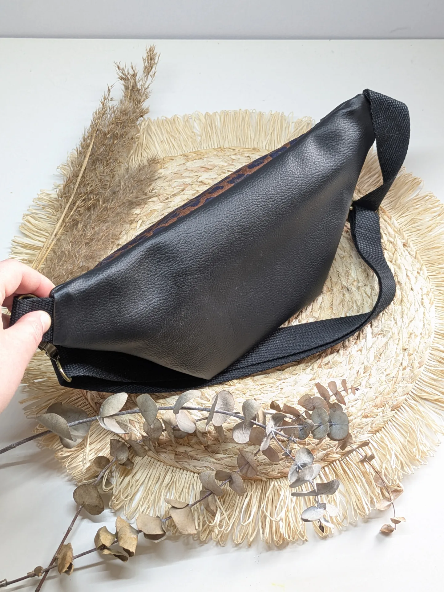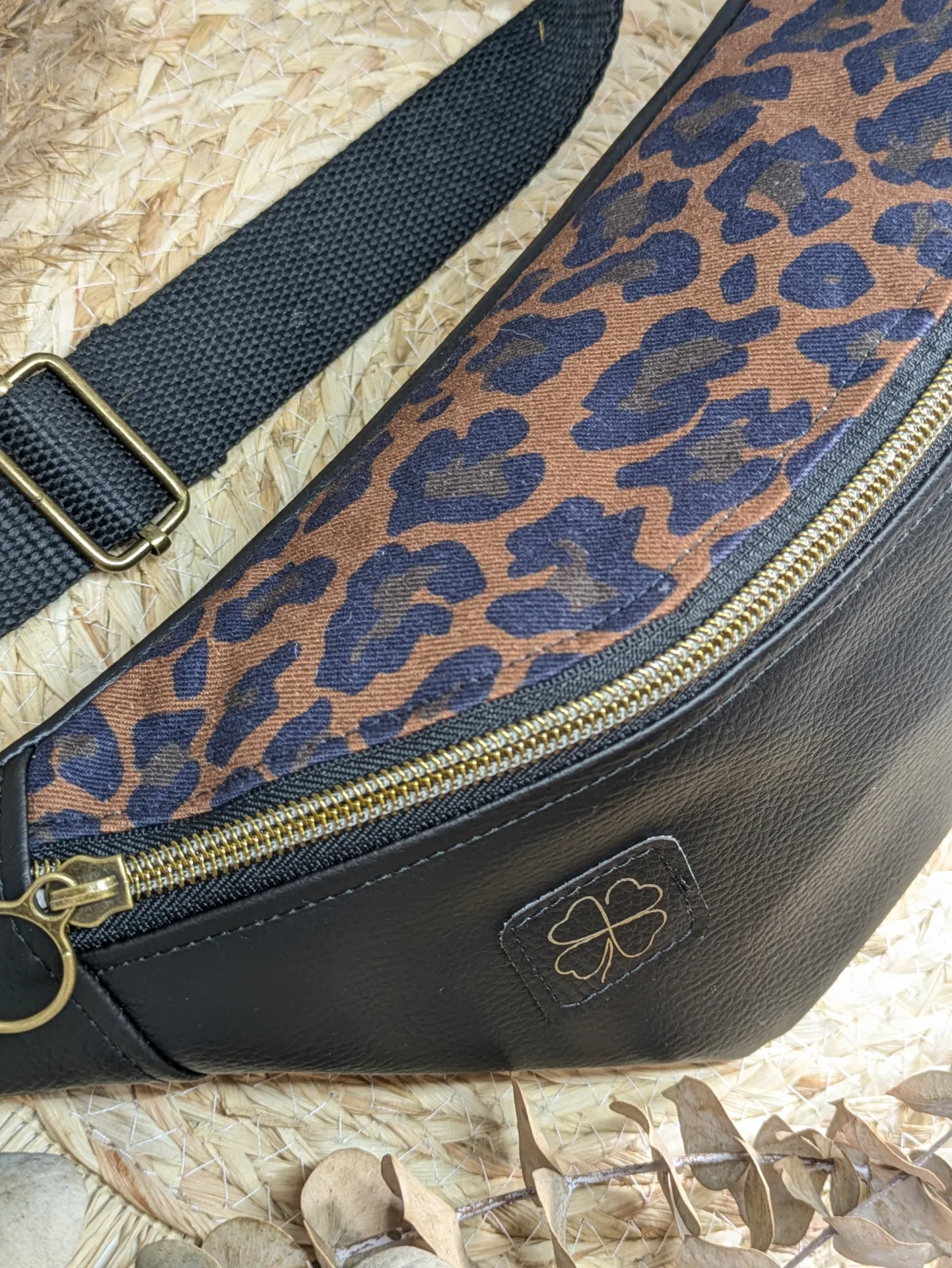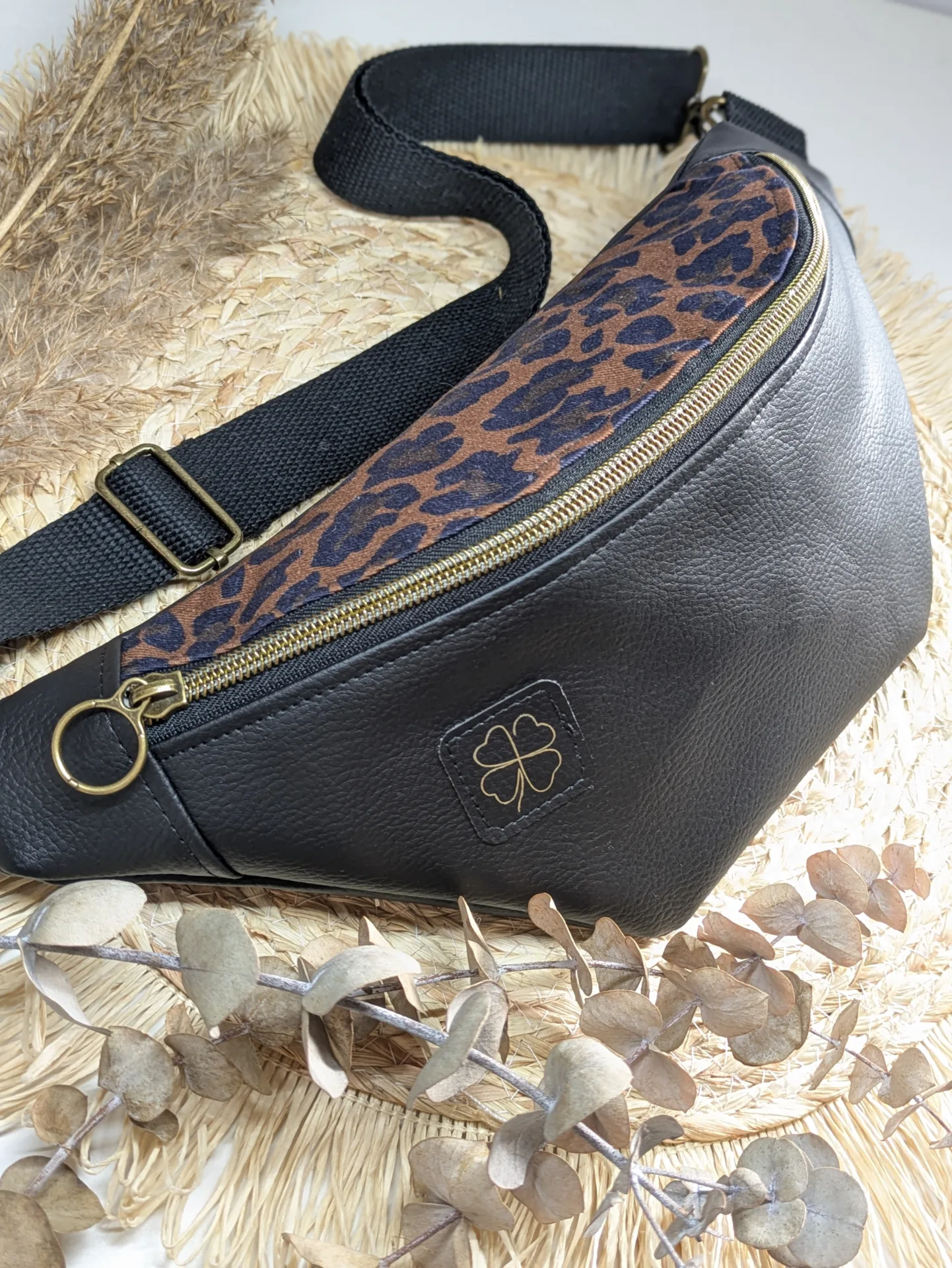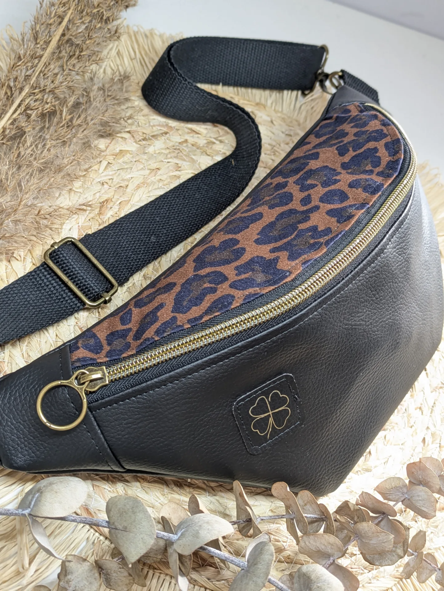 Soyez le premier à laisser votre avis sur “Sac banane artisanal noir détail Léopard”