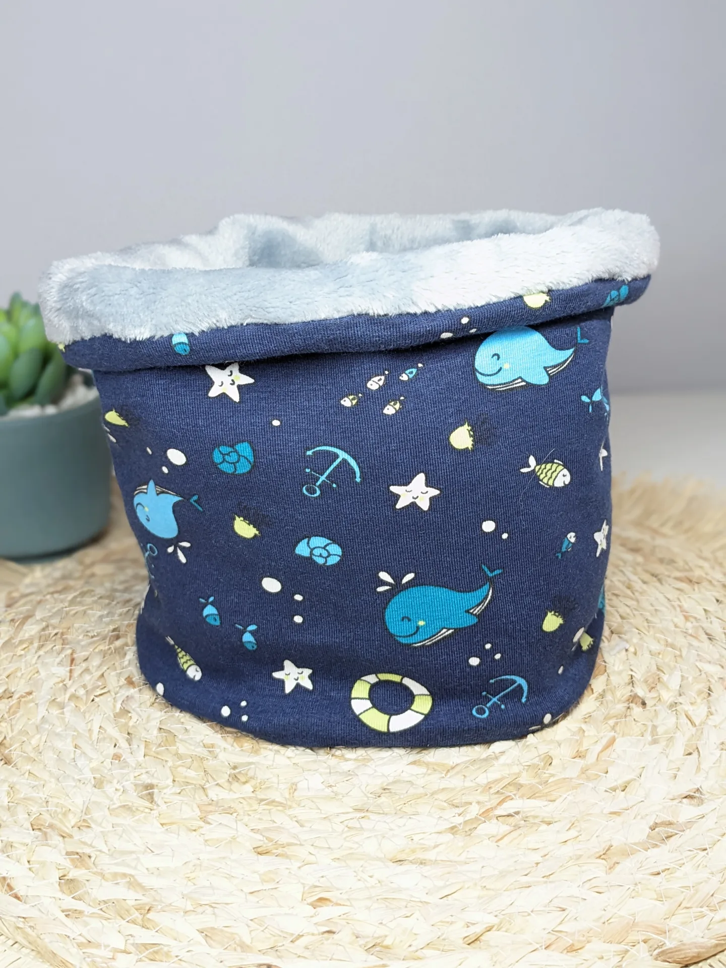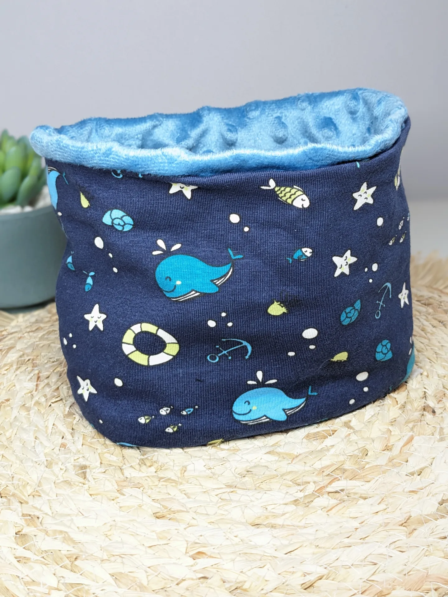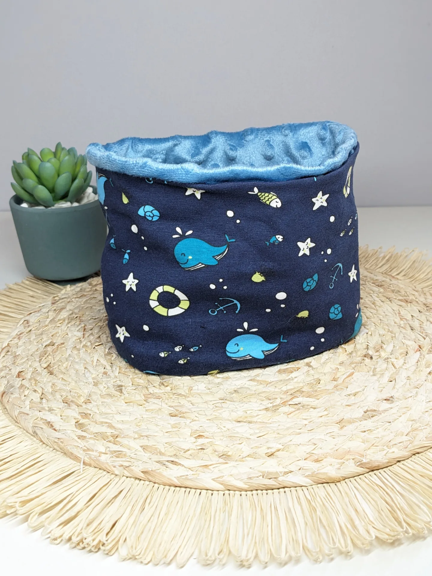 *Et en tissu minky ou doudou uni pour l’intérieur.