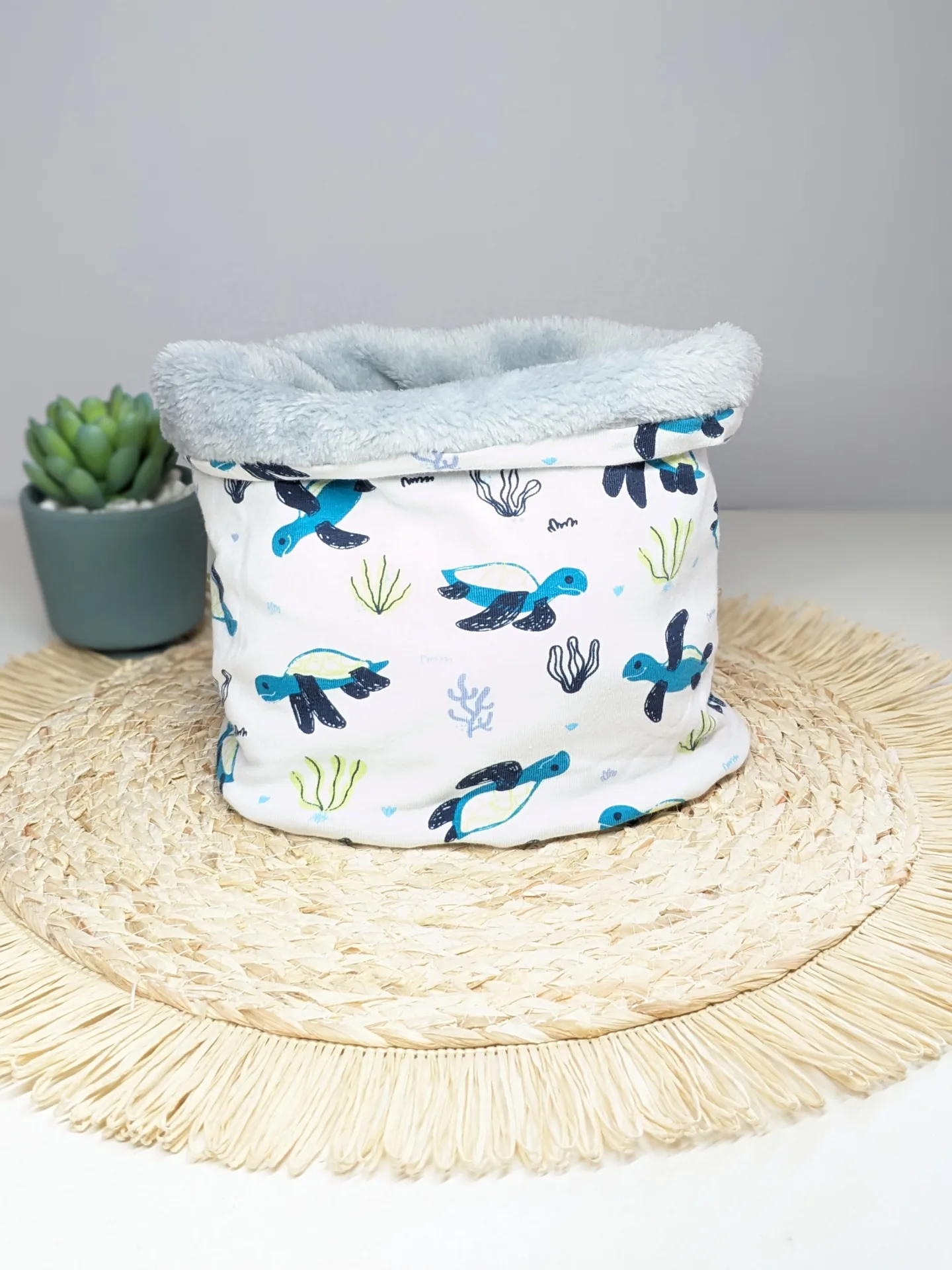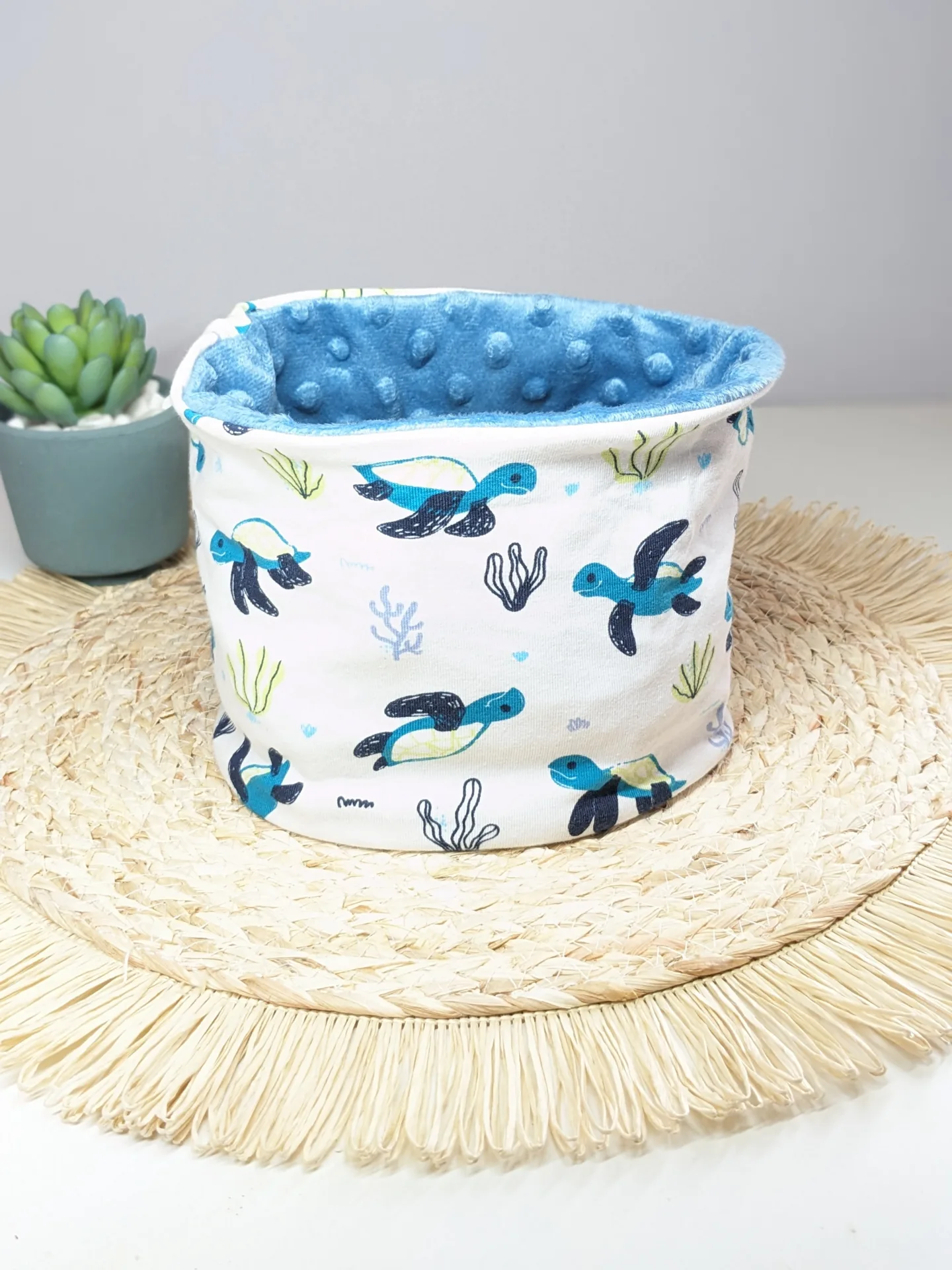 *Et en tissu minky ou doudou uni pour l’intérieur.